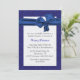 chá de panela Bonito feito em uma cor damasco azul, com uma área de texto branca e úmida. Gráficos de uma estação bonito como arco azul, decoram o topo do convite. Texto em cinzas escuras e azul é totalmente personalizável para atender às suas necessidades. Um convite encantador para a noiva ser.