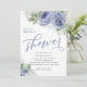 Convites Chá de panela, Azul e Prata, Flores de Aquarela