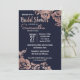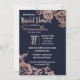 As elegantes, quentes e simples e modernas flores rosa douradas impressas e a tipografia em fundo azul marinho, Convites de chá de panela. Este design clássico e sofisticado é perfeito para a classe, na moda e a moda. Personalize com sua própria mensagem na frente e um monograma personalizado na parte de trás. Todas as impressão de fotos.
