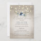 Rastreadores russos e chá de panela floral azul empoeirado com madeira de celeiro e luzes de cordas design. O convite para chás rústicos elegantes com layout de texto moderno pode ser alterado como preferível.