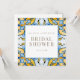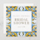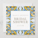 Chá de panela azul e amarelo. Quadrada. Dourado texto. Mediterrâneo.