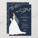 Comece seu chá de casamento com nossa noiva moderna colocada em um chá de panela de fundo azul escuro contemporâneo com galhos e folhas prateadas. Sacudir nossa noiva moderna para ver uma coordenação de volta. Apenas personalize nosso convite bonito, chic e na moda com suas informações de casamento e você está pronto para ir. Disponível em outras combinações de cores populares em nosso compro. Confira nossas lindas notas de agradecimento, adesivos e botões de noiva no nosso compro