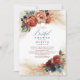 Pampas e terracotta, tons azuis, flores convites de chá de panela elegantes botânicos