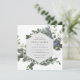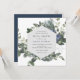 Trendy, convite de chá de casamento quadrado enquadrado pela folhagem de cor d'água de Holly, Evergreens e flores de inverno. Personalize com suas informações para o dia do chá. Clique em "clicar para personalizar mais" para alterar o estilo, o tamanho, a cor ou a cor de fundo da fonte.