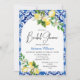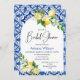 Chá de panela Azulejo de limão azul azulejo azul e branco moderno e chá de panela de limões também apresentando um arco branco com borda azul clara e uma imagem de cabeçalho da caligrafia moderna. Este