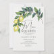 Matizes de limão e pistas de festas: uma história de amor escrita em uma estante de limonada ou árvores de limão crescem com um padrão italiano de azulejos azuis. Este convite com o tema "Ela encontrou seu maior aperto" captura a essência desta doce narrativa, convidando-o a celebrar a descoberta da noiva do amor e um tema brilhante e ensolarado do chá de panela. Explore um chá de panela temático dos citros que irradie calor e zest. Uma moda e moderna ilustração aquática de limões e ramos de limão, arranjada em um arco, fornece o pano de fundo para este elegante e chic chá de panela brunch convite que também apresenta uma pintura de azulejo italiano de aquarela no verso. A caligrafia elegante arredonda este design único que é perfeito para um chá de panela de primavera ou verão, para uma festa de jardim, uma festa festiva de interior ou uma festa de casa discreta.