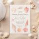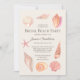 Um convite para festas noivas elegantes na praia de na moda com bonito conchas de aquarela em tons de rosa e pêssego em um fundo de cor creme.
