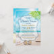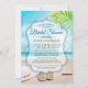 Jogue uma festa de chá de panela para a noiva com este brilhante e alegre design com uma praia de areia branca com mar azul turquesa e céu azul reforçado por luzes bokeh, decorado com um chapéu de disquete, sandálias de praia, concha e folha de palmeiras frescas. Perfeito para casamentos de praia, casamentos de destino, casamentos tropicais, casamentos insulares, casamentos de Verão e outros locais relacionados com o mar. Visite a coleção para ver a suíte inteira.