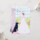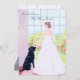 design de Chá de panela de Labrador Preto e bonito. Elegante e fofo. Uma bonito noiva está sorrindo para seu Black Labrador perto da janela. Há uma bela vista de jardim com rosas pela janela. Pintada por Naomi Ochiai do Japão. Você pode personalizar o texto como quiser. Remova o texto de exemplo e insira o seu.
