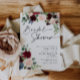 Boho Burgundy e Blush Floral Chá de panela. Esse convite se caracteriza por boho burgundy e rosas e flores esmagados com duas fontes modernas de alta classe que moldam as tendências dos eventos festivos atuais e futuros.
