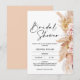 Chá de panela Elegante Boho Boho de Grama Blush Boho com chá de panela de tema Elegante Boho com arranjo floral com grama pampas e flores secas em tons e pinks naturais. O título da caligrafia é uma imagem que pode ser removida. O verso do convite é uma cor clara que também pode ser alterada. Esta design é ideal para um chá de panela moderno com tema de livros.