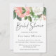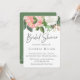 Arranjo floral Elegante para jardins de aquarelas numa bonito paleta de verão de rosa-pincel, rosa, branco e verde, chá de panela. Personalizar texto, estilo de fonte, cor e tamanho. A parte traseira da placa apresenta cor verde estável e arranjo floral correspondente.