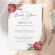 Celebre a noiva a ser com este chá de panela elegante com rosas embaçadas, grama pampas macia e verde romântico. O moderno roteiro e o clássico par de fontes serif lindamente com o quente trabalho de arte floral. Totalmente personalizável com nome, informações do host, data, local, RSVP e detalhes do registro. Ideal para chás de panela rústicos ou de jardim.
