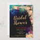 Chá de panela Boho-Chic. Para a futura noiva boêmia alternativo. Grande energia feliz com essa cor d'água colorida floral e penas no design de fundo preto. Mandala com penas e cartões de chá de panela para flores | Feita com amor Configurada por Webgrrl.art