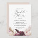 Este chá de panela de grama boho pampas é perfeito para um chá de casamento de verão. O design de aquarela floral apresenta uma burgundia boêmica e flores cor-de-rosa pinceladas com ranhuras de erva-pampas neutra e folhas de palma secas de ouro.