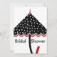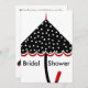 O guarda-chuva preto com bolinhas brancas e vermelhos constituem o ponto focal deste chá de panela. Todo texto é personalizável
