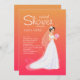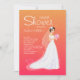 Este belo convite de chá de noiva é apresentado em um vestido de chão com um trem e véu e segurando um buquê de flores contra um fundo cor-de-rosa quente para um gradiente de pêssego. (Vecteezy.com - casamento de freevoctor). O cartão é fácil de personalizar com seu texto, fonte, cor da fonte, opções de forma de papel e escolha de seis tipos de papel. Não exatamente o que você está procurando? Todos os nossos produtos podem ser personalizados para atender às suas necessidades sem custos adicionais. Basta entrar em contato conosco em heartfelthelper@gmail.com Coordenando os produtos disponíveis: Apenas nos pergunte!
