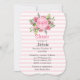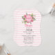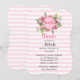 Bonito chá de panela riscado cor-de-rosa, com um arranjo de flor de pénia rosa no topo, com um disco rosa no meio com texto. Personalize todos os campos de texto para o seu evento de noiva.