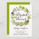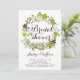 Belo chá de panela floral. Apresenta uma coroa floral de flores verdes e cinzas de primavera com caligrafia balnear. Este chá de panela floral será perfeito para chás de panela de primavera e inverno. Personalize adicionando os detalhes do evento.