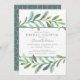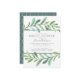 Um elegante chá de panela botânico confinado em vinhas de cor azul-esverdeada. A cor de fundo é mostrada em branco, mas pode ser personalizada para corresponder ao seu tema de casamento.