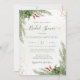 Belo chá de panela com ilustrações botânicas a aquarela pintadas à mão de verde-inverno, pinheiro e ramificações de pinho, cones e groselhas com brilho dourado. Escolha perfeita para casamentos temáticos de inverno ou Natal.