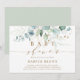 Este convite para chás de fraldas apresenta cores aquáticas pintadas de eucalipto, folhas botânicas verdes e douradas com guião dourado.