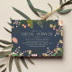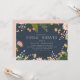 O chá de panela inspirado pela natureza Chic apresenta uma borda de flores cor-de-rosa e cor-de-pêssego com folhas verdes e botânicos. Personalize com seu chá de panela e detalhes do registro em letras brancas elegantes em um fundo azul de tinta rica.