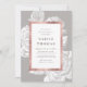 Moldura de rosa dourada faux a negrito, rodeada por uma floral botânica vintage em cinzas neutras e branca, elegante e clássica. Excelente para casamento clássico moderno, casamento vintage em primavera. Personalizando a cor de fundo conforme desejar. Veja todas as peças correspondentes na coleção.