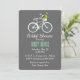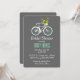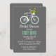Na moda chá de panela fez cinzas, com gráficos de uma bicicleta de mulher branca e verde-menta, com um cesto de flores e borboletas voando ao redor. O texto em branco e verde-menta está pronto para personalizar o seu evento especial. O convite adorável que a noiva vai gostar. Produtos correspondentes disponíveis.