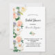 Um chá de panela floral brilhante e tenente, cor-de-rosa-pincel, rosa e branco. Um clássico fundo branco na frente. Decorados com flores grandes, esmagadas e aquáticas, florais em branco, rosa, cor-de-rosa pincelado com um pouco de verde. Personalize e adicione seus nomes e detalhes do casamento. Texto preto. Traseira: fundo cor-de-rosa embebido.