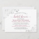 Este belo chá de panela é simples e elegante. Apresenta rosa ou cor-de-rosa-mave empoeirado e texto de cinza num fundo branco com fraldas de folha de alumínio prateado nos cantos. Ele tem informações sobre o chá, bem como RSVP e Registro. Uma maneira perfeita de celebrar a noiva de estar em estilo!