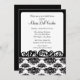 Parta seu evento fora do direito com nosso chá de panela que caracteriza o quadro bonito do redemoinho com um fundo branco & preto da parte inferior do damasco. Combinação de cor branca & preta na moda. Apenas personalize nosso convite com sua informação do casamento e você é todo ajusta-se para ir. Design Inc de Mujka do ©