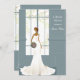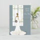 Celebrar a bela noiva afro-americana com este adorável convite com uma noiva espantosa em um longo vestido branco diante de uma janela de fotos que ignora os jardins.