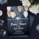 Um chá de panela moderno, elegante e chico com o tema denim e diamante que combina outro tema da moda: balões, em denim, ouro e branco com brilho fino (esse é um efeito digital) e um grande brilho. Ele apresenta um fundo denim e tipografia em branco. Um design de "denim e diamantes" chico para uma noiva moderna que ama denim!