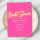 Design de festa moderna e chá de panela de menina em rosa-quente brilhante com texto brilhante neon e brilho dourado falso.