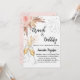 Um convite moderno, na moda e glamouroso para um Chá de panela de bolinho. Um fundo branco com bolhas, um par de flautas, óculos, rosas cor-de-rosa pinceladas e grama-pampas. O nome é escrito com um moderno estilo escrito à mão. Personalize e adicione os detalhes da sua festa.