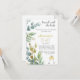 Brunch com o Chá de panela Bride com belas aquarelas de eucalipto e óculos de champanhe. Personalizado na frente com informações de chá e no verso com o registro da noiva. Este convite elegante estabelece uma atmosfera perfeita para o seu evento.