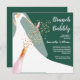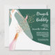 O Brunch e os convites de chá de panela espumantes apresentam uma noiva no vestido e no véu em um fundo verde esmeralda com garrafa de vinho espumante, flauta de vidro e sequências de faux com seus detalhes em letras brancas quicas. **DICA: O tamanho quadrado REQUER POSTAGEM EXTRA. Mais cores na nossa coleção.