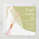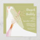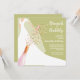 Os convites de chá de panela de Brunch e Bubble apresentam uma noiva no seu vestido e véu em um fundo verde com uma garrafa de champanhe, sequências de vidro e faux e seus detalhes em letras brancas chic. **DICA: O tamanho quadrado REQUER POSTAGEM EXTRA. Mais cores na nossa coleção.