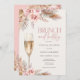 Este adorável chá de panela de "brunch and bubble" apresenta um fundo de marfim com erva-pampas neutra, florais secos, rosas cor-de-rosa pincelada e um brilhante vidro de champanhe. O verso é detalhado com mais pampas e florais e um belo fundo cor-de-rosa.