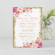 Chá de panela Brilhante Floral Dourado com Cor de Água Elegante Cor Rosa Brunei e Cartão de Convite à Borracha