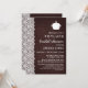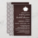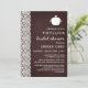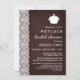 Convite para um chá de panela de sorte com uma braçadeira impressa e fundo de renda, e um pote bonito que tem tampa com um botão em forma de coração.