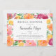 Chá de panela chic apresenta um padrão de fundo de flores de papoila vibrantes e coloridas em tons de cor d'água de rosa, laranja e violeta. Personalize com os detalhes do seu chá de panela em letras negras de tinta escura, com o nome da noiva no moderno script de caligrafia estilo escrito à mão.