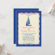 excelente de convite elegante e atraente para um evento com tema náutico. Ideia para celebrar a noiva e o noivo com um chá de panela casal. Apresenta a silhueta de um barco a vela em azul escuro com uma borda vermelha branca. design atrativo e unisexo com um toque de classe. Adicione seu próprio texto.