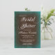Rustic Country Turquoise Distressa Teal e Convites de chá de panela Castanhos com antigos planos de fundo angustiado. O texto "Chá de panela" é muito grande e escrito. Esta parte do texto faz parte do pano de fundo e não pode ser editada. Estas são excelentes para as noivas do país serem e para qualquer um que ama um olhar rústico.
