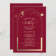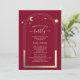 Mística Burgundy Dourada Sun Moon Stars Astronomy Space Celestial Brunch e Convites de chá de panela Bubble apresentam um sol dourado, lua e estrelas em um fundo burlando. Dentro é a sua informação personalizada sobre o chá de panela. Personalize editando o texto nas caixas de texto. Projetado por ©2022 Evco Studio www.zazzle.com/store/evcostudio