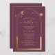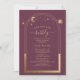 Mística Plum Sun Moon Dourado Stars Astronomy Space Celestial Brunch e Convites de chá de panela Bubble apresentam um sol dourado, lua e estrelas em um fundo de ameixa. Dentro é a sua informação personalizada sobre o chá de panela. Personalize editando o texto nas caixas de texto. Projetado por ©2022 Evco Studio www.zazzle.com/store/evcostudio