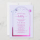 A Lavanda mística, cor-de-rosa, a Lua-Sol, estrelas astronômica Space Celestial Brunch e Convites de chá de panela à espiga apresentam um sol roxo e rosa, lua e estrelas em um fundo de lavanda pastel. Dentro é a sua informação personalizada sobre o chá de panela. Personalize editando o texto nas caixas de texto. Projetado por ©2022 Evco Studio www.zazzle.com/store/evcostudio