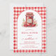 Celebrar a noiva com este encantador chá de panela "Emperrado com Amor". Apresentando uma pintura aquosa de um boião de compota de cereja, cobrir de gingham vermelho e branco, juntamente com delicadas flores de cereja e cerejas, que é simplesmente charmoso. Veja a coordenação de itens no nosso compro, Encantado Finch.