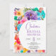 Chá de panela gráfico moderno e brilhante, apresentando flores bonito do jardim em cores arco-íris, rosa, roxo, azul, amarelo, vermelho, verde, com uma mistura entre as flores antigas e retrorreflectoras pintadas em estilo moderno com elementos botânicos em torno do arco amarelo editável com uma letra moderna de pincel.